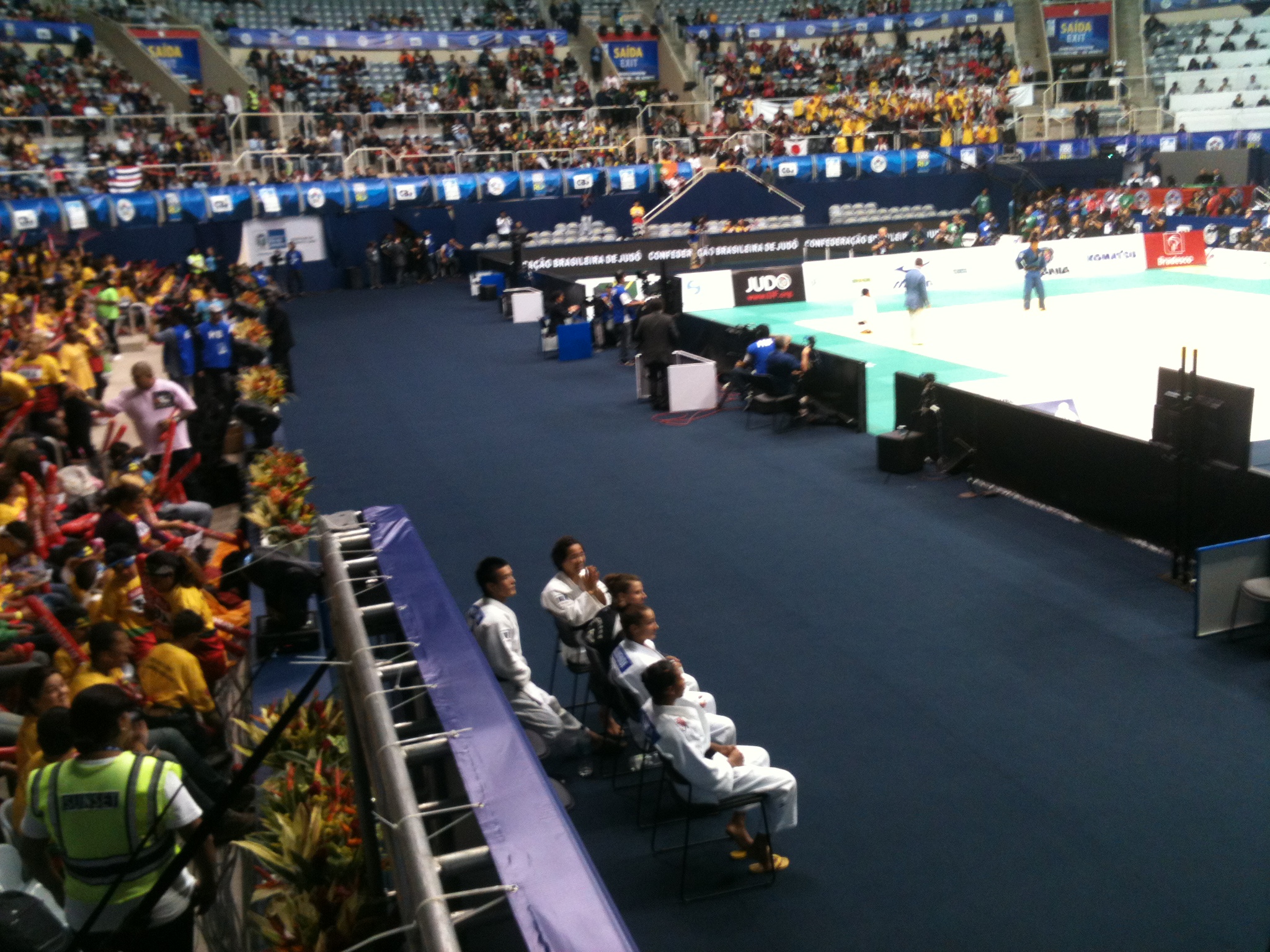 Os japoneses que pegaram bronze preferem ver a luta no telão!