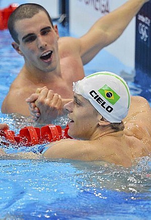 Faltam apenas dois dias e natação olímpica somente no Rio daqui a 4 anos. Nos resta torcer para uma boa participação da Gracielle nos 50m livre e fazer historia na mesma prova, no masculino, com duas medalhas brasileiras! O 4x100m Medley não deve levar medalha mas uma final já será sensacional pra fechar a competição com chave de ouro! Eu iria de Thiago de costas, Felipe Franca de peito, Cielo de borboleta e Chiareguini de crawl. Vamos ver como nossa comissão técnica vai montar a equipe e quem sabe a euforia da dobradinha nos 50m livre nao incentiva a equipe a se superar e brigar pelo bronze com japoneses, Sul-Africanos e franceses.