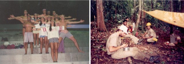 Janeiro 1994: comemoração pelo oitavo geral; uma semana depois, polido e raspado, coletando dados geofísicos na floresta amazônica.
