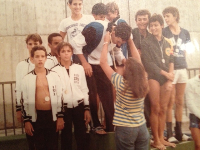 Cinco anos depois eu nadaria a final do 4x100m Medley no Campeonato Mundial (de curta) de Palma de Majorca para um 5º lugar e recorde sul-americano. O maior feito da minha carreira ao lado daquele mesmo Junior de 1982 e dos grandes Romero e Gustavo. Foi a ultima vez que nadei o 4x100m Medley em grande estilo. Tenho plena consciência que um 5º lugar de Mundial é muito, mais muito mais relevante que um titulo paulista, dos quais tenho dezenas. Quando olho em retrospecto, tenho muito orgulho dessa 5ª colocação, mas felicidade igual aquele ouro no Paulista de 88 eu não tive outra, salve talvez pelo recorde brasileiro nos 200m peito, no Finkel de 1995, com o pré-anúncio do Mario Xavier. Pesos bem diferentes sem dúvida, mas agente não escolhe nossos momentos de maior alegria! Essa imprevisibilidade ou relatividade da vida e’ sem duvida a que a torna tao fascinante!
