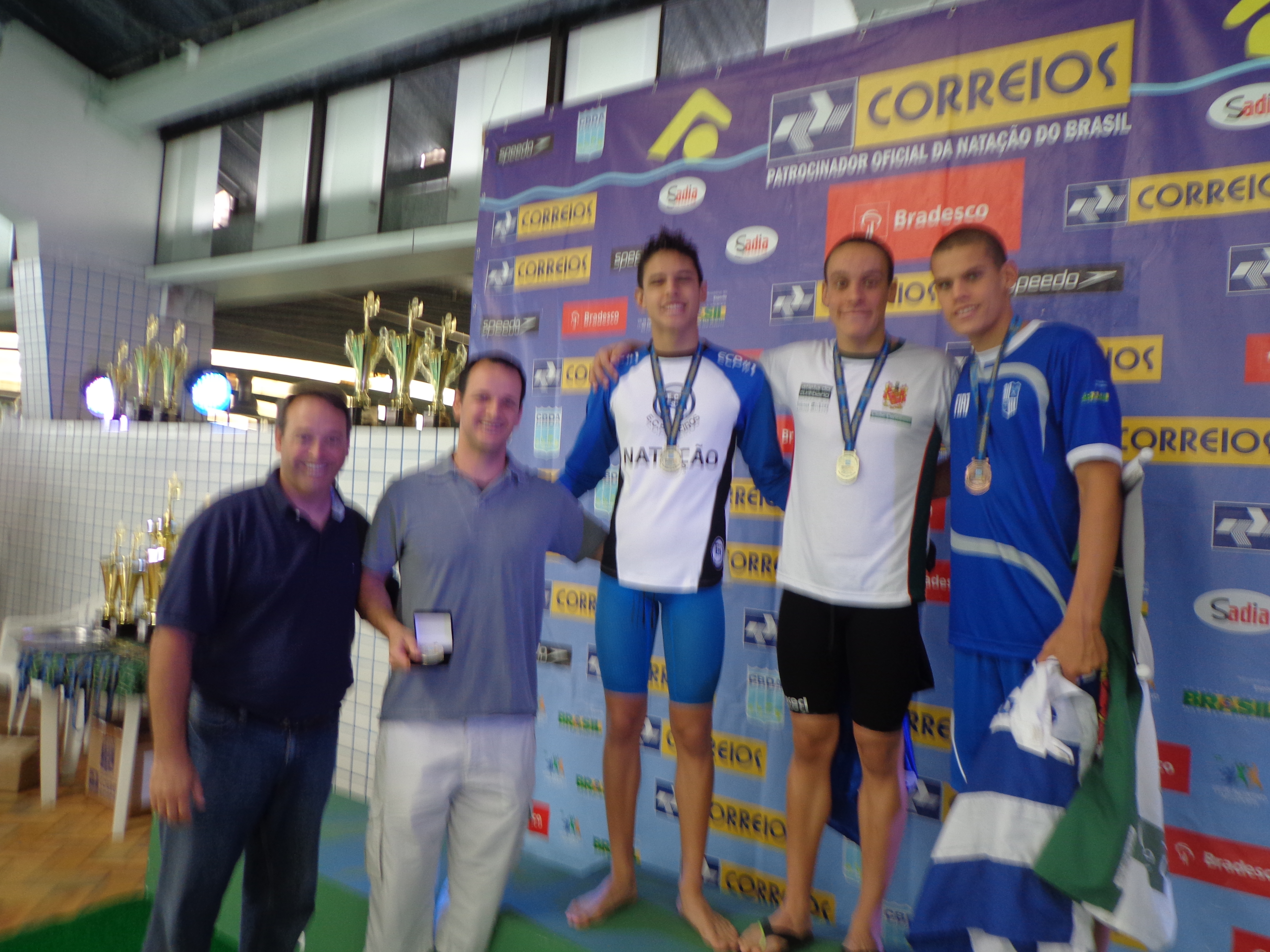 Pódio da prova de 100m peito