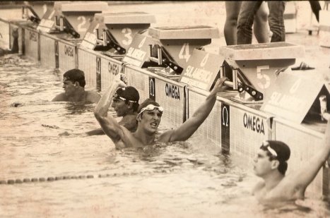 Década de 80, nosso esporte vindo de décadas sob gestão de Ruben Dinard, que por eleição pelas federações passou para seu filho Ruben Márcio. Vivíamos um início de incentivo de empresas ao esporte (vôlei com Pirelli e Bradesco, nosso antigo futebol de salão – hoje futsal, etc) e nós nadadores ansiando pelo mesmo incentivo, só que sómente poucos (2 ou 3) conseguiram bons patrocínios individuais. Tínhamos pouco intercambio, restringindo-se a Sul Americanos (2 / 2 anos) Copa Latina (anual), Pan (4/4), Mundial (só de longa de 4 em 4) e Olimpíadas (4/4). E mais nada. Mas uma coisa era certa: os melhores (vencedores) sempre iam, inclusive outros países até 89 sempre mandavam seus principais atletas. Mas isso é outro caso.