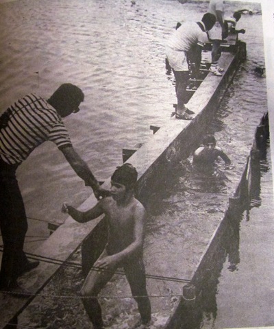 Detestava a espera (não tinha um senhor que nadava antes de tudo, e demorava horas prá atravessar?), detestava a saída, tinha medo de morrer afogada, juro por Deus! Tinha umas nadadoras que eram orientadas a dar pancada na saída, pontapé, dar caldo, o que fosse preciso prá sair na frente. Detestava a chegada tb., que poderia ter outra disputa no tapa! Acho que meu irmão teve uma história de caldo e puxão na chegada, que os juízes viram e trocaram as posições (ele tinha sido o puxado e afundado).