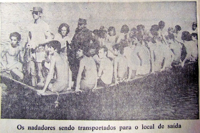 Ao revirar as reportagens sobre a travessia a equipe do Epichurus acabou descobrindo que um dos maiores nadadores da história do Brasil foi PEBA um dia. É isso mesmo, RIcardo Prado, ao fazer a travessia em 1974 terminou em 3o. lugar na categoria Mirim. Bom, no ano seguinte ele ganhou e continuou ganhando quase tudo em sua carreira, mas pelo menos o Rogério Martins e o Sidney Rodrigues podem dizer que foram uns dos poucos que já ganharam do Ricardo Prado!