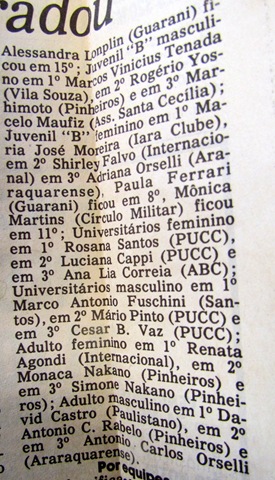 Ricardo, infelizmente eu não consegui os resultados da década de 70 e nem os da década de 90, mas por coincidência um dos jornais que estavam no departamento de Patrimônio tinham a sua foto no podium.