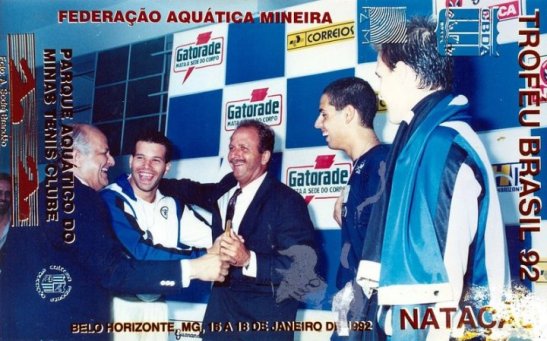 Coaracy Nunes e Bernard do vôlei, paraninfos da prova de 200m livre. Michelena badalado mas o ouro foi de Cassiano.