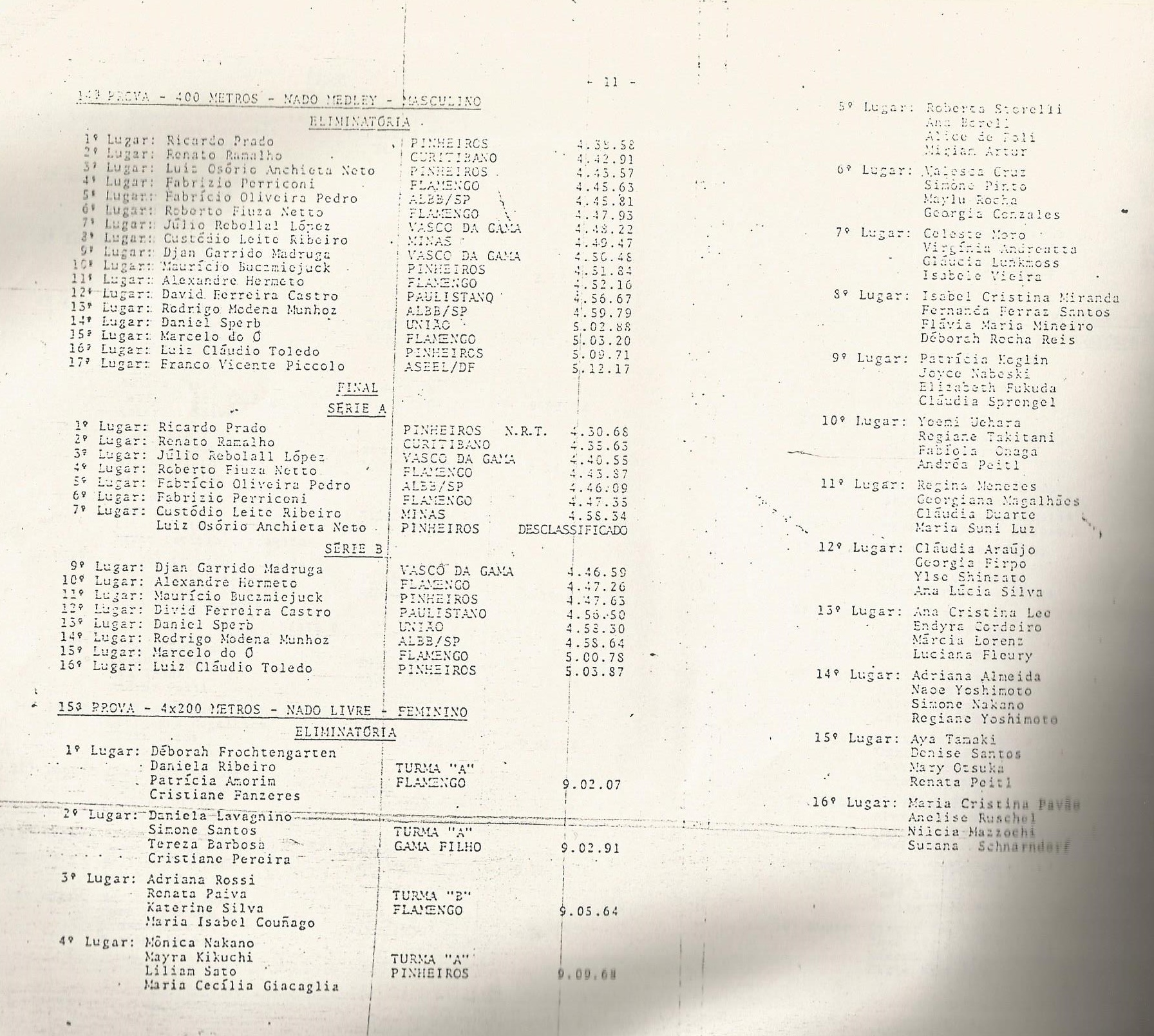 Troféu de 87 no Minas TC – notem R Prado ganhou a prova e Djan ganhou série B. O Peba aqui, com 15 anos ficou lá pra trás, mas orgulhoso de ter nadado com ídolos…