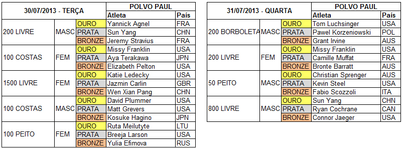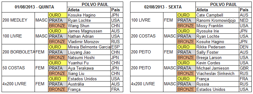 O Polvo Paul demorou, mas finalmente enviou os seus palpites para os medalhistas em Barcelona 2013. Eu já estava ficando preocupado, achando que Paul não iria mais sair do seu repouso eterno, mas ele voltou para desafiar os leitores do Epichurus.