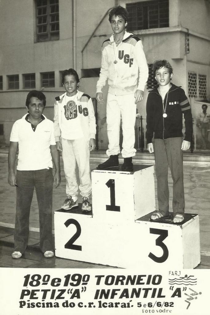 Segue meu comentario agradecendo ao Maga por tel colocado minha foto. Eu sou de outubro 71 e essa foto eh de 82, muito provavelmente do carioca de inverno de 82. O Alberto (Oliveira) e o Marcio (Santos) eram imbativeis no Brasil. Acho q fiz 1″08 nessa competicao se nao me engano mas nao tenho certeza. Foi meu ultimo ano de petiz e ultimo sem ano civil. Fiz bastante “graca” em mirim e petiz (principalmente nos anos fortes) mas infantil foi uma grande bosta. Quase sempre fui o mais veloz do Fla da minha idade (se tivesse prova de 50 em petiz eu seria c certeza um dos melhores do brasil). Mas veio o infantil e o downgrade gigante veio c a instituicao do ano civil somado a puberdade tardia. Ainda fiz o indice do mauricio becken super inchado em 83 mas em 84 nem o indice fiz. Por causa disso minha natacao quase chegou ao fim em 85 mas o Alberto (Klar) me resgatou. Me incentivou, treinou e me fez campeao carioca no ano seguinte. Conversou comigo, explicou a diferenca de forca, me fez treinar mais e focar nos resultados. E eles vieram enquanto tive saco p treinar na madruga. Nao sai de peba mas, pelo menos, deu p fazer graca novamente.