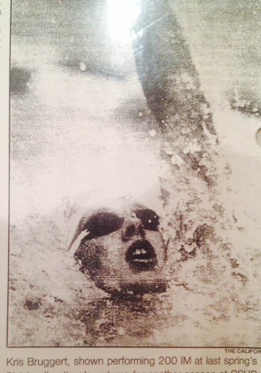 Eu retornava aos Estados Unidos de curtas férias no Brasil para a temporada de 1991/1992 do NCAA. Com a aposentadoria do olímpico dinamarquês Kristian Bruggert (1’03 de 100m peito em piscina longa), a vaga de peito do 4×100 Medley na equipe do Maglischo estava aberta e o velho não hesitou em remediar a situação.