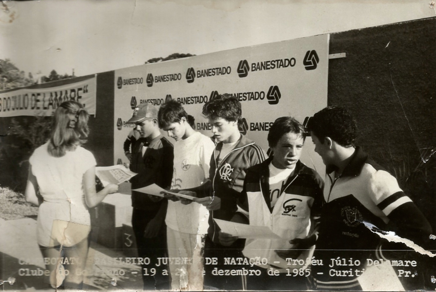 Premiação dos 200m peito Juvenil A – ouro para Felipe Michelena, Renato Cordani em 5o lugar.