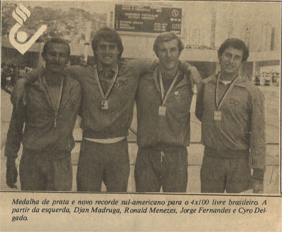 Top 3 vai para… A boa atuação da natação brasileira masculina, destaque especial para alguns dos melhores tempos da vida de: Marcelo Jucá: 3:55.66 nos 400L – bronze e 15:33.01 nos 1500L – prata (e 1:52.81 nos 200L e 56.44 nos 100B dos revezas). Foi a competição da vida do Jucá. Maviael Sampaio Neto: 2:24.79 nos 200P (aliás empatando com o Luiz F. Carvalho em quinto lugar). 51.09 do Jorge Fernandes e 50.96 do Cyro Delgado saindo respectivamente em segundo e em quarto no revezamento 4×100 Livre que pegou a prata (não sei se são os melhores tempos deles, mas foram muito bons para a época). Ricardo Prado: 1:59.00 nos 200B, 2:02.85 nos 200C. Mais detalhes no top 1.