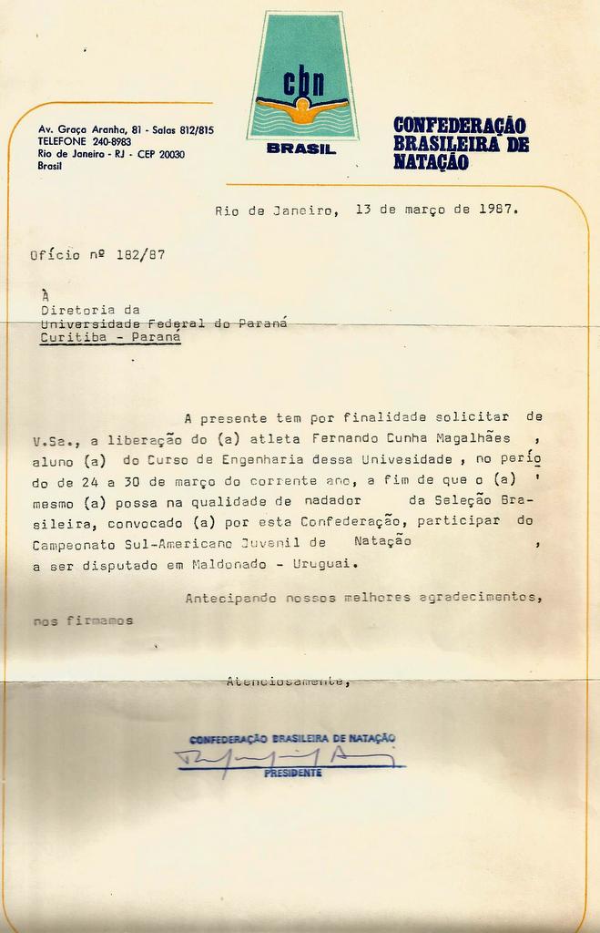 Com apenas duas semanas de aulas no curso de Engenharia Química da UFPR, já estava apresentando aos professores que mal conhecia, o pedido de dispensa para nadar o sul-americano.