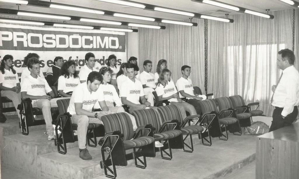 Empresário Sérgio Prosdócimo, presidente da REFRIPAR, recebe a seleção paranaense. 1a fila: Cristiano Michelena, Cristiane Santos, Fernando Magalhães, Claudia Sprengel e Rogério Romero. 2a fila: Luiz Alfredo Mader, Renata Carneiro, Renato Ramalho, ?, Cezar Antunes e Marta Bonk. 3a fila: Joyce Wabeski, Celeste Moro, Leonardo Del Vescovo, ? e Patricia Koglin