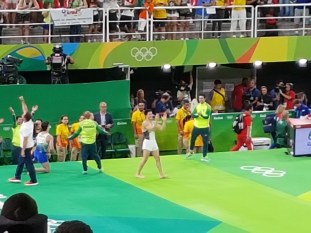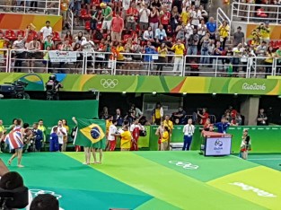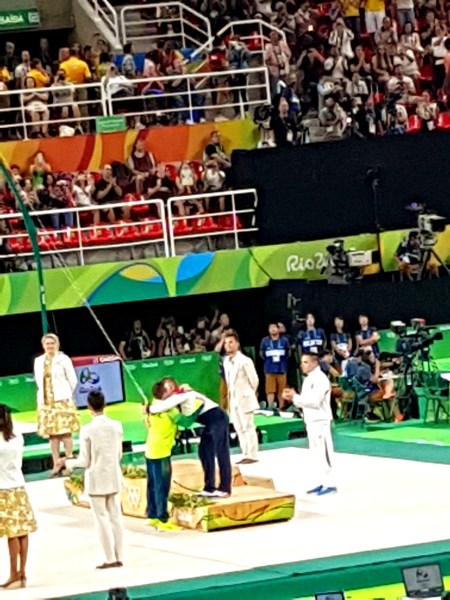 Assistir a história ao vivo é demais! Domingo no Parque Olímpico foi para ver o ginásio inteiro chorar com Diego e cantar o Hino Nacional pela Prata e pelo Bronze, repetindo a mesma cena com Arthur na segunda-feira. Neste dia a Kiss Cam teve a oportunidade de mostrar no telão um beijo do casal mais lindo da Arena, embora não haja registro fotográfico, a Lia estava lá e viu. Como a Julia está treinando a algum tempo, já tínhamos visto um pouco na Copa do Mundo de Ginástica no Ibirapuera ano passado, mas a Olimpíada é muito mais legal.