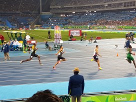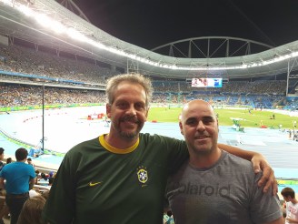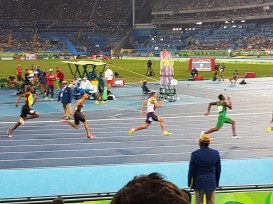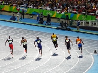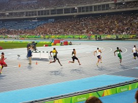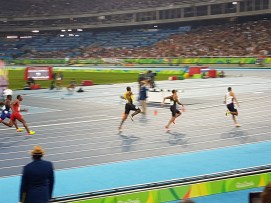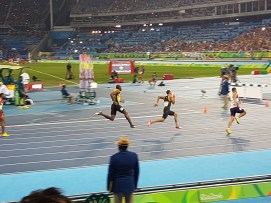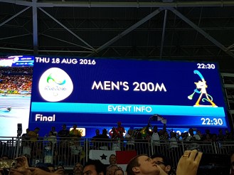 Quinta-feira houve um pouco de tempo para almoçar com os PEBAs no Leblon passear pelo Boulevard Olímpico, pegar um trem na Central do Brasil em pleno “rush” e chegar pra ver o Bolt na final dos 200. Estádio lotado e unanimidade na torcida, fazer a Volta Olímpica com a bandeira do Brasil nas costas é mais uma amostra de simpatia no meio de tantas, filmar e postar o gol do Neymar é outra. O cara é extremamente carismático, todo mundo torceu por ele, que venceu com o mesmo tempo da semi na véspera, mas desta vez com dois décimos de vantagem sobre o canadense. Também vimos o Darlan Romani bater o recorde brasileiro no arremesso, obtendo um sensacional 5º. Lugar e muitos aplausos da galera.