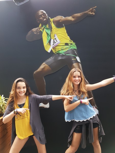 No dia seguinte a Final da Rotina Livre, como a Julia já conhecia as duplas e suas notas da véspera, ajudando bastante a entender o desenrolar destas finais, infelizmente sem as brasileiras. Ao sair do Maria Lenk as gatinhas ainda deram uma entrevista pra FOX. BRT/Trem e mais Atletismo, mas desta vez com Bolt na Semifinal e assentos bem no meio da curva dos 200. Vimos com alegria o decatleta Luis Alberto fazer seu “Personal Best” nos 400 rasos.