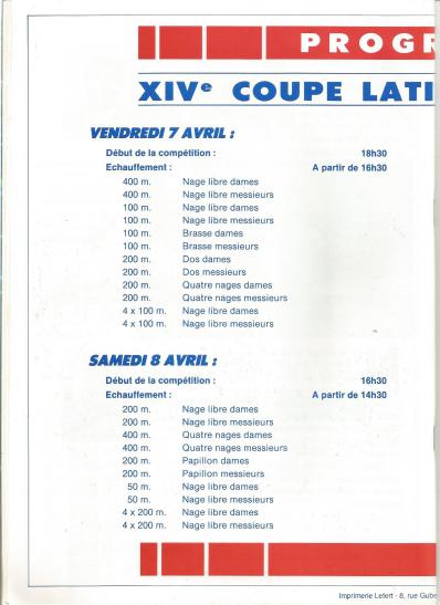 1989 – Coupe Latine de Natation – Nice, France