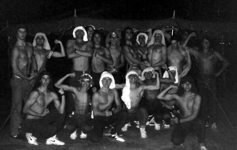 Equipe masculina após jantar na Pizzaria Biondina, no dia do cancelamento.