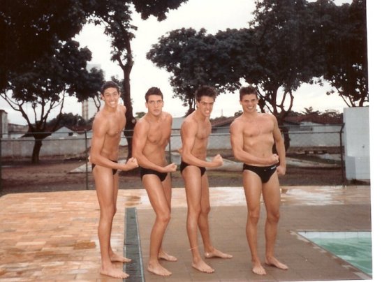 Gustavo, Mané, Hawilla e Santinho, circa 1989. Foto que peguei no Facebook do Gustavo.