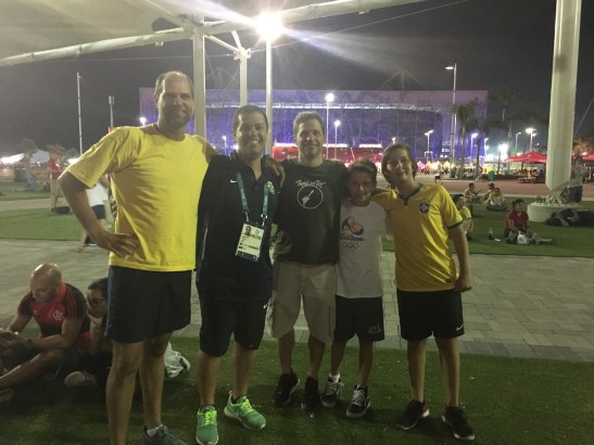 Coach olímpico foi dar um alô para a torcida com a piscina ao fundo.