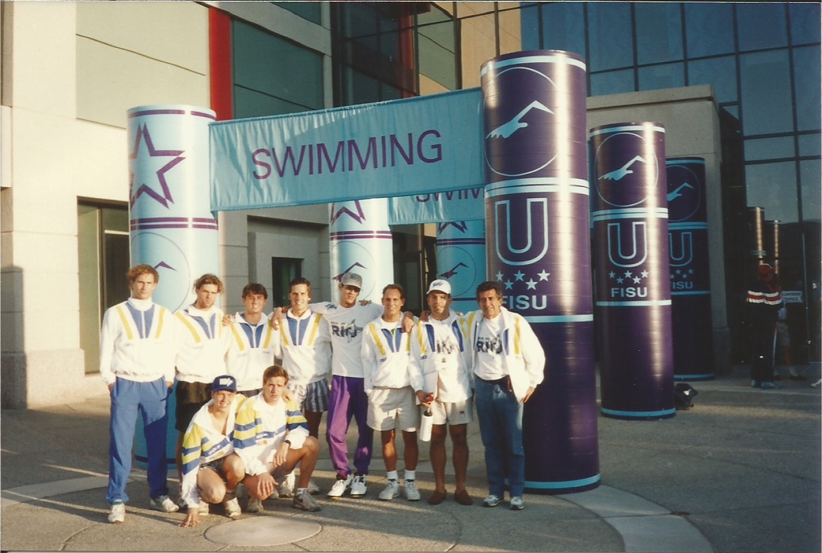 Time de natação Universíade 1993: Daniel, Renato, Cheiroso, Saboia, André Teixeira, Hermeto, Carlos, Daltely, Xuxa, Cassiano.